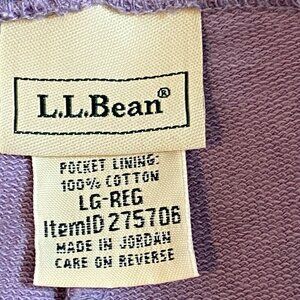 The L.L. Bean 2-Piece Lounge Sweat Set in XL is a comfortable and stylish addition to any woman's wardrobe. This sweat set includes a cozy sweatshirt and matching pants in a solid purple color. Made from a cotton spandex blend, this tracksuit is perfect for casual wear or lounging. The loungewear set exudes a relaxed athleisure style, ideal for comfortable days at home.