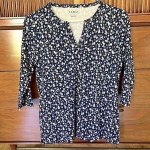 LL Bean 3/4 Long Sleeve Ditsy Floral Fitted Tee