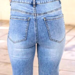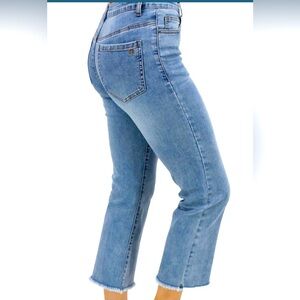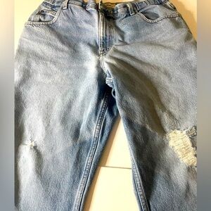 LL Bean 34x30” Light Indigo Ankle Cropped Distressed Frayed Hem Grunge Jeans