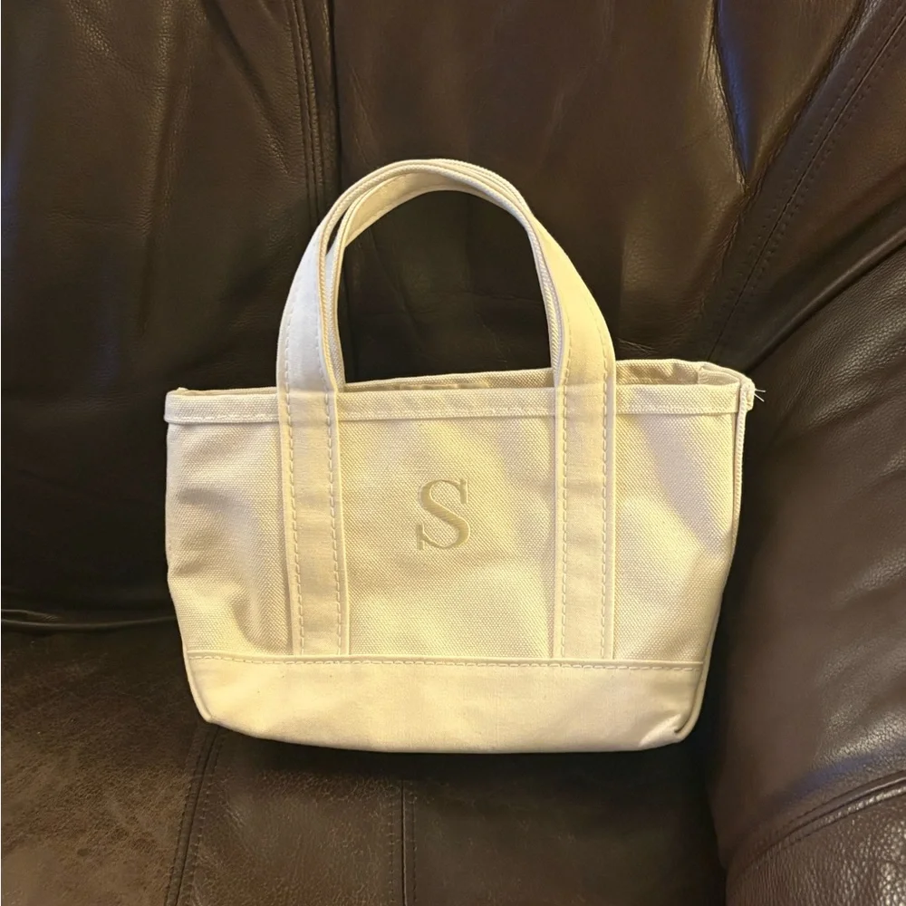 LL Bean Mini boat tote Cream color S embroidered Lightly used