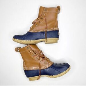 L.L Bean 8-inch Bean Boot Tan Navy women’s Size 6