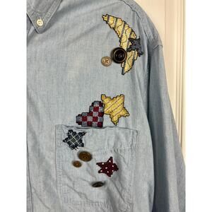 L.L. Bean 90s Embroidered Angel Celestial Denim Jean Shirt Blouse 2X Womens
