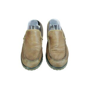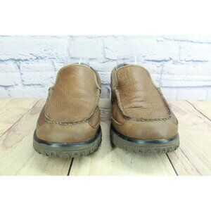 LL Bean All Week Men's Brown Leather Shearling Lined Moccasin Slippers Size 10 M