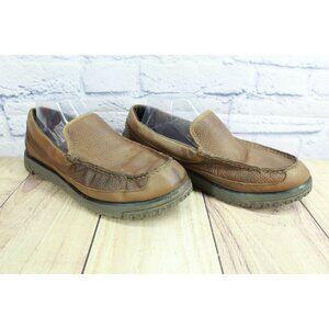 LL Bean All Week Men's Brown Leather Shearling Lined Moccasin Slippers Size 9 M