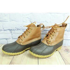 LL Bean Ankle Duck Boots Brown Leather Lace Up Unlined Round Toe Size 6 M