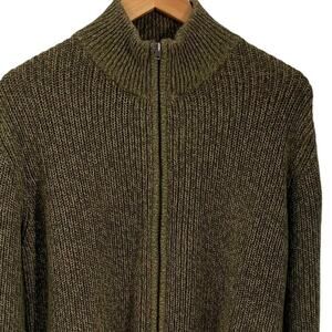 L.L. Bean Army Green Cotton Thick Knit Zip Up Cardigan Size Large
