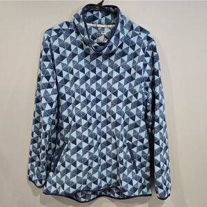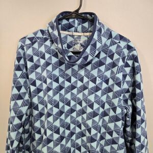 🐢 LL Bean Aztec Pullover Fleece Jacket Women’s Turtleneck Blue Tribal Size XL