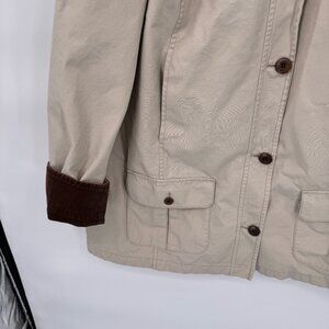 LL Bean Barn Chore Coat Mens 2X Tan Brown Cotton Corduroy Trim Flannel Lined VTG