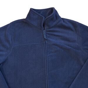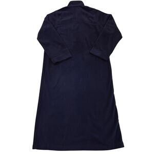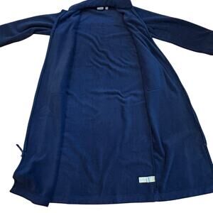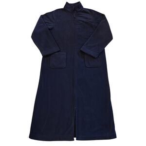 LL Bean Bath Robe Womens Medium Blue Fleece Housecoat 2 Way Full Zip Pockets
