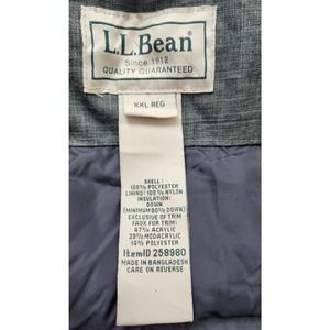 The gray jacket is available in Men's Size XXL, and is part of the LL Bean Baxter product line. Ideal for winter/cold weather activities, this parka is perfect for any outdoorsman. Its full 2-way zip and breathable material make it easy to wear, while the solid pattern and Nylon lining material make it fashionable. Get your hands on the LL Bean Baxter State Parka today!