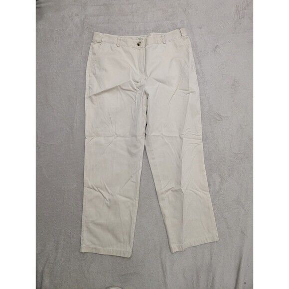 LL Bean Beige Ivory Khaki Classic Fit Straight Leg Pants Womens Size 14 14P Pet
