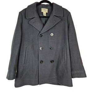 L.L. Bean Black Italian Wool Double Breasted Pea Coat, size XL Reg. Style# 500027. Bellandi Italian wool, 3M Insulate insulation, lined. Nautical/Sailor anchor button close, front pockets. Excellent pre-owned condition.