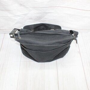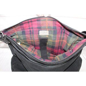 LL Bean Black Canvas Flannel Lined College Office Crossbody Messenger Bag