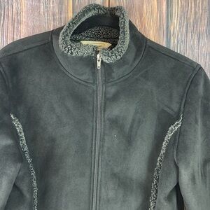 LL Bean Black Faux Suede Shearling Jacket- Size Medium