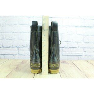 LL Bean Black Leather Lace Up Round Toe Unlined Mid Calf Duck Boots Size 7 M