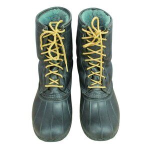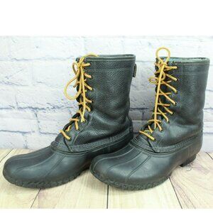 LL Bean Black Leather Shearling Lined Insulated Mid Calf Duck Boots Size 10 M