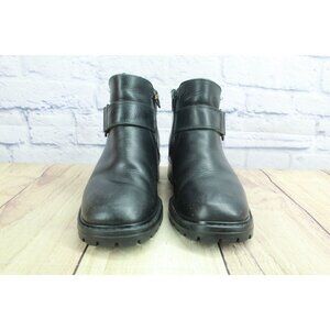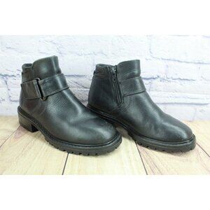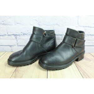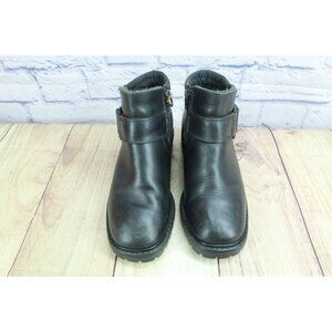 LL Bean Black Leather Wool Lined Side Zip Chunky Heel Y2K Combat Boots Size 7 M