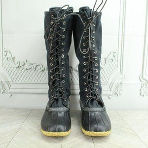 LL Bean Women's Black Waxed Leather Unlined Hunting Tall Duck Boots Size 6 M
