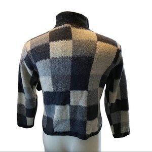 Cozy checkered cardigan with button front. Ideal for cool weather.