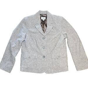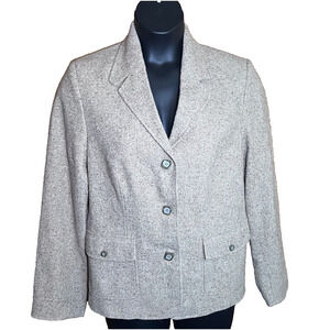 LL Bean Blazer 3 Button Jacket Women's Large Wool Lined Silk Blend Herringbone