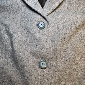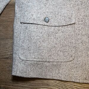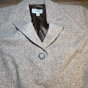 LL Bean Women's Blazer Jacket 3 Button Tan Herringbone Lined Wool/Silk Blend Size Large