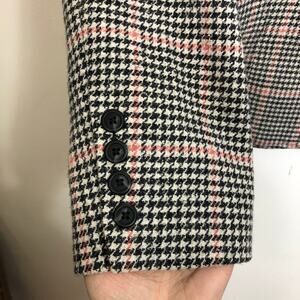 L.L. Bean Blazer Wool Silk Houndstooth Plaid Button Front Double Pockets XL