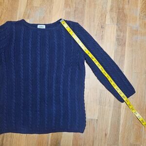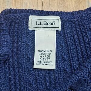 LL Bean Blue Cotton Fisherman Sweater Womens M Cable Knit Preppy