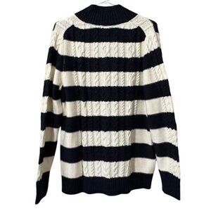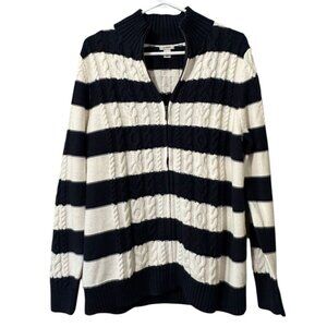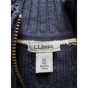 LL Bean Blue Cream Sweater Men Size XL Zip Cable Knit Cardigan Fisherman Classic