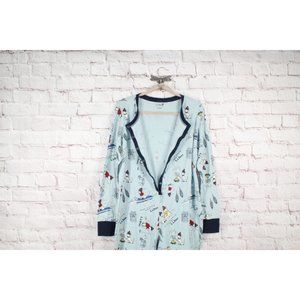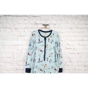 LL Bean Blue Mini Waffle One-Piece Unionsuit Pajama Size XL