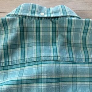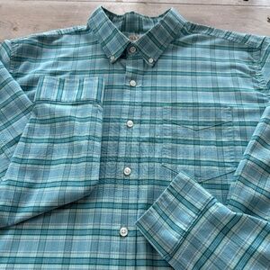 LL Bean Blue and Mint Plaid L/S Comfort Stretch Oxford Button Down Shirt 510031 Men's Size XLT