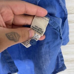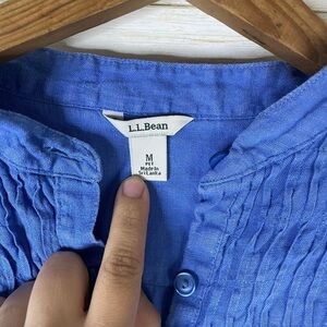 LL Bean Blue Pleated Linen Long Sleeve Button Down