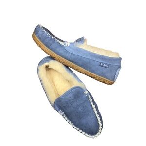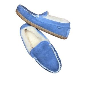 L.L. Bean Blue Suede Moccasin Slippers