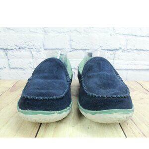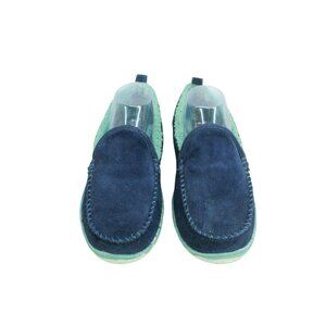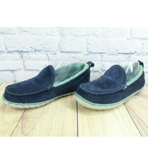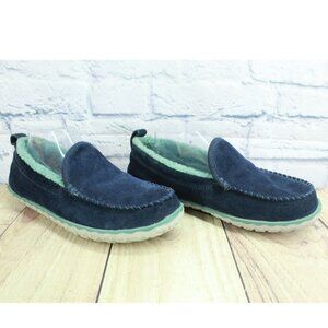 LL Bean Blue Suede Slip-on Fleece Lined Mountain Moccasin Slippers Size 8 M