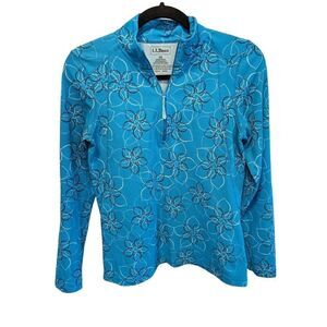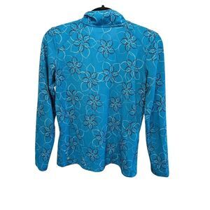 L.L. Bean Blue Turquoise Zip Front Floral Jacket Women's Size XS
