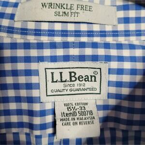 L.L. Bean Blue & White Checkered Button Up Long Sleeve Shirt, size 15 1/2-33