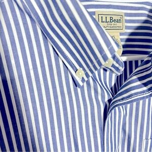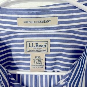 LL Bean Blue & White Striped short sleeve button down size XL. Wrinkle Resistant