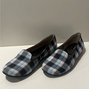 L.L. Bean Blue and Black Plaid Sleek Loafers