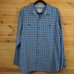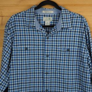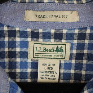 LL Bean Blue and White Plaid Traditional Fit Button Up Shirt Size Large