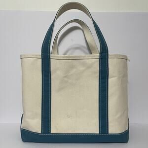 LL Bean Boat and Tote Canvas Bag Meduim USA Teal Blue Embroidered MiMi -See Pics