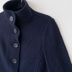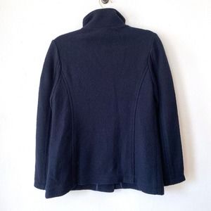 LL Bean Boiled Funnel Neck Wool Button Front Pocket Jacket Blue Womens XS Petite