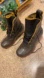 L.L. Bean Boots 8” Made With Distressed Bison Leather and Rubber lowers/ bottoms. They are Dark Brown and Brick Red Women’s Size 6 Medium Width. Item 274563. These are in good used condition. Since they aren’t brand new there may be minor imperfections and minor signs of wear. The rubber lowers are waterproof. Bean Boots have a unique fit and they say that they are made to accommodate a thick sock. I include a picture of their suggested sizing. Their recommendation for sizing is not a guarantee for fit but is a general guide. I personally am a regular shoe size of 7.5 and feel that this L.L. Bean size 6 is too short for me with a lightweight sock and that’s why I’m selling them. Any Measurements are rough approximate measurements.
