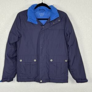 LL Bean Boys Goose Down Puffer Coat Hooded Navy Blue Size M 10 12