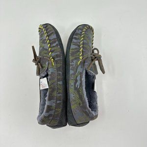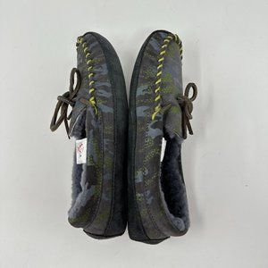 LL Bean Boys KIDS Slippers Camouflage Moccasins Suede Sheepskin Shearling