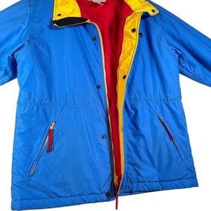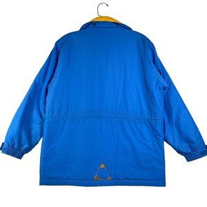 L.L. Bean Boys Penobscot Parka Jacket Size L 14/16 Blue Yellow Zip Snap Pockets