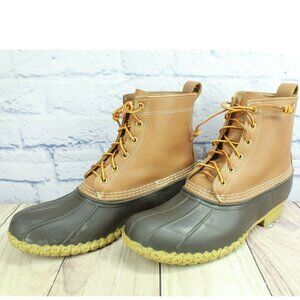 LL Bean Brown Leather 8" Lace Up Unlined Ankle Duck Boots Size 13 M