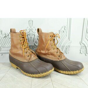 LL Bean Brown Leather Lace Up Round Toe Unlined Ankle Duck Boots Size 9 M
