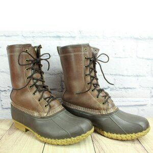 LL Bean Brown Leather Lace Up Shearling Lined Insulated Duck Boots Size 10 Wide