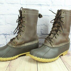 LL Bean Brown Leather Shearling Lined Mid Calf Duck Boots Round Toe Size 8 Wide