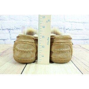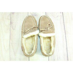 LL Bean Brown Suede Wicked Good Shearling Lined Moccasin Slippers Size 7 M