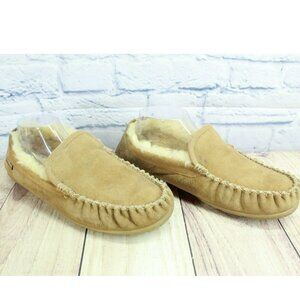 LL Bean Brown Suede Wicked Good Shearling Lined Venetian Slippers Size 10 M